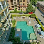 Golden Hermes Apartmets van 90 m^2 ligt op korte rijafstand van 10 minuten van het Ziekenhuis. Het appartement biedt een buitenzwembad voor een meer ontspannen verblijf.